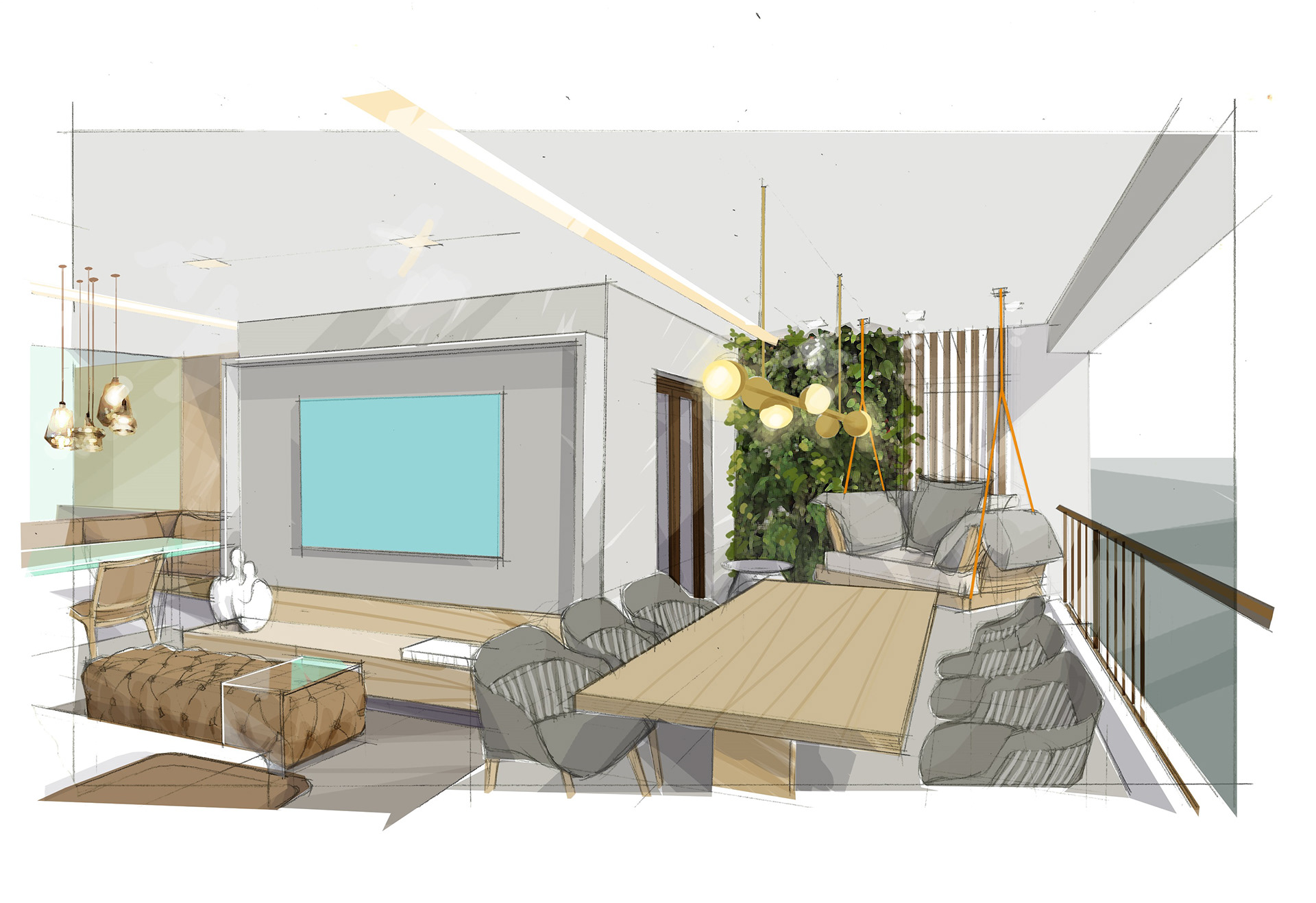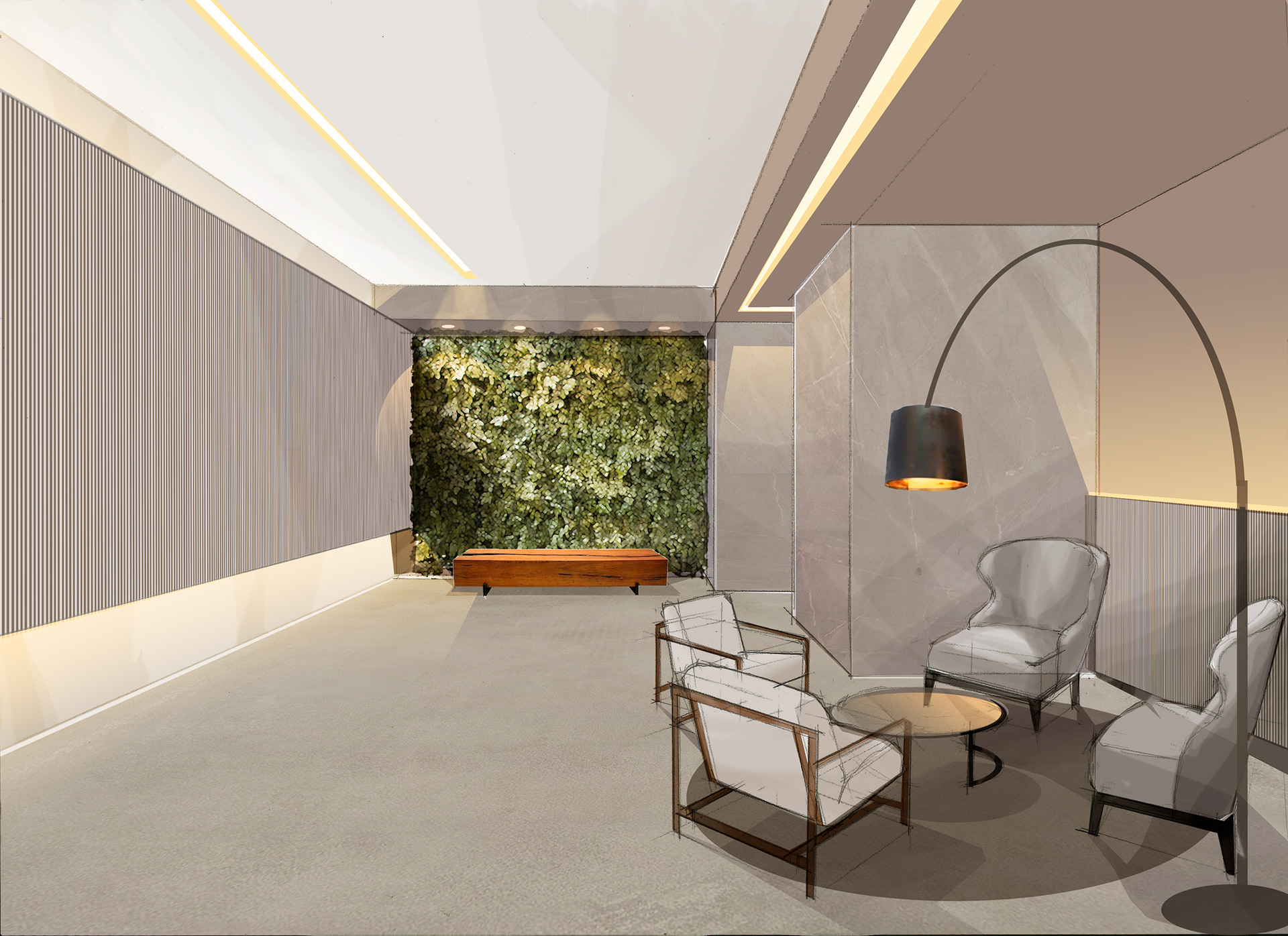 I believe that drawing is the purest form of architectural thought. My artistic perspectives emerge from the contact of graphite on paper, capturing the essence of a project long before it is built. After digitizing the sketches, I use digital painting (Adobe Photoshop) to breathe life into the scenes.