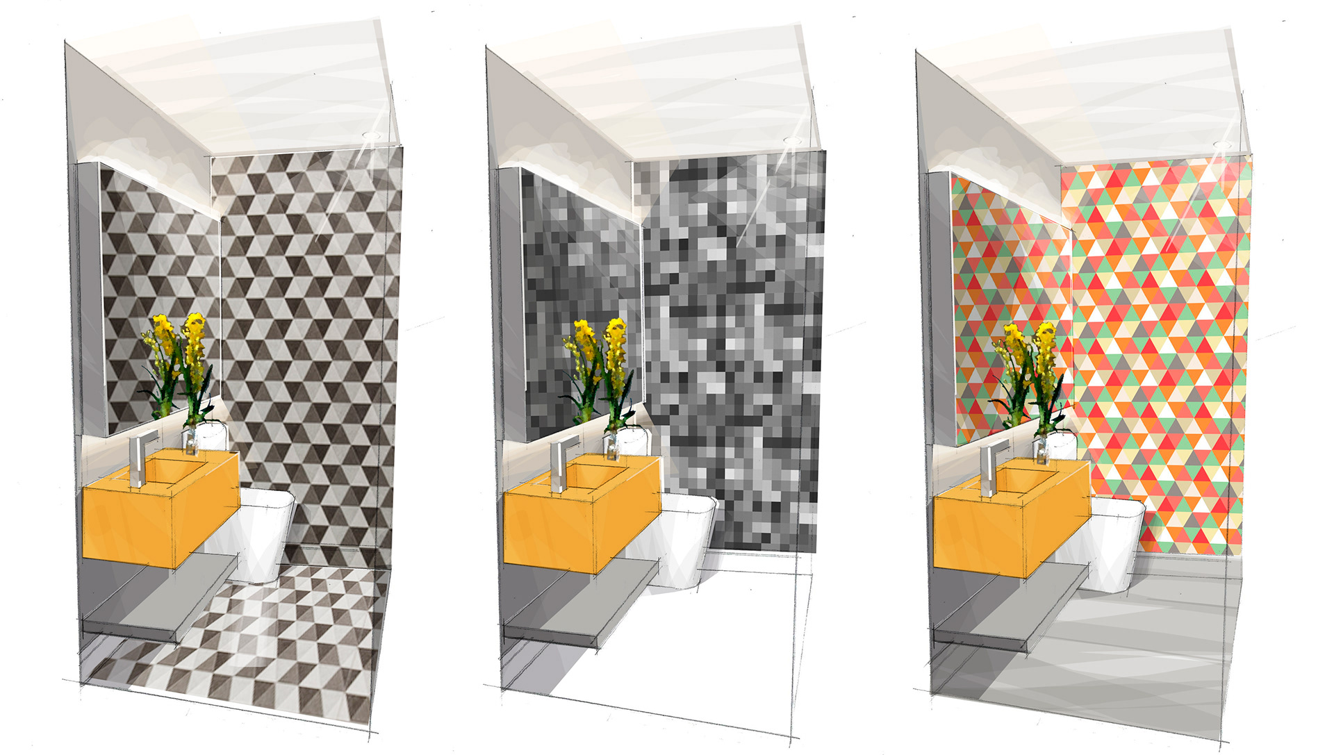 Estudo para Lavabo. Escolha de revestimentos.
